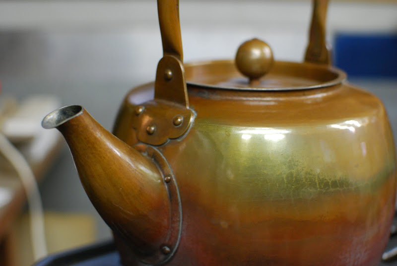 こちらは、大山さん愛用のヤカン。使い込むほどに色合いに深い味わいがでてくる打ち出し銅器。
