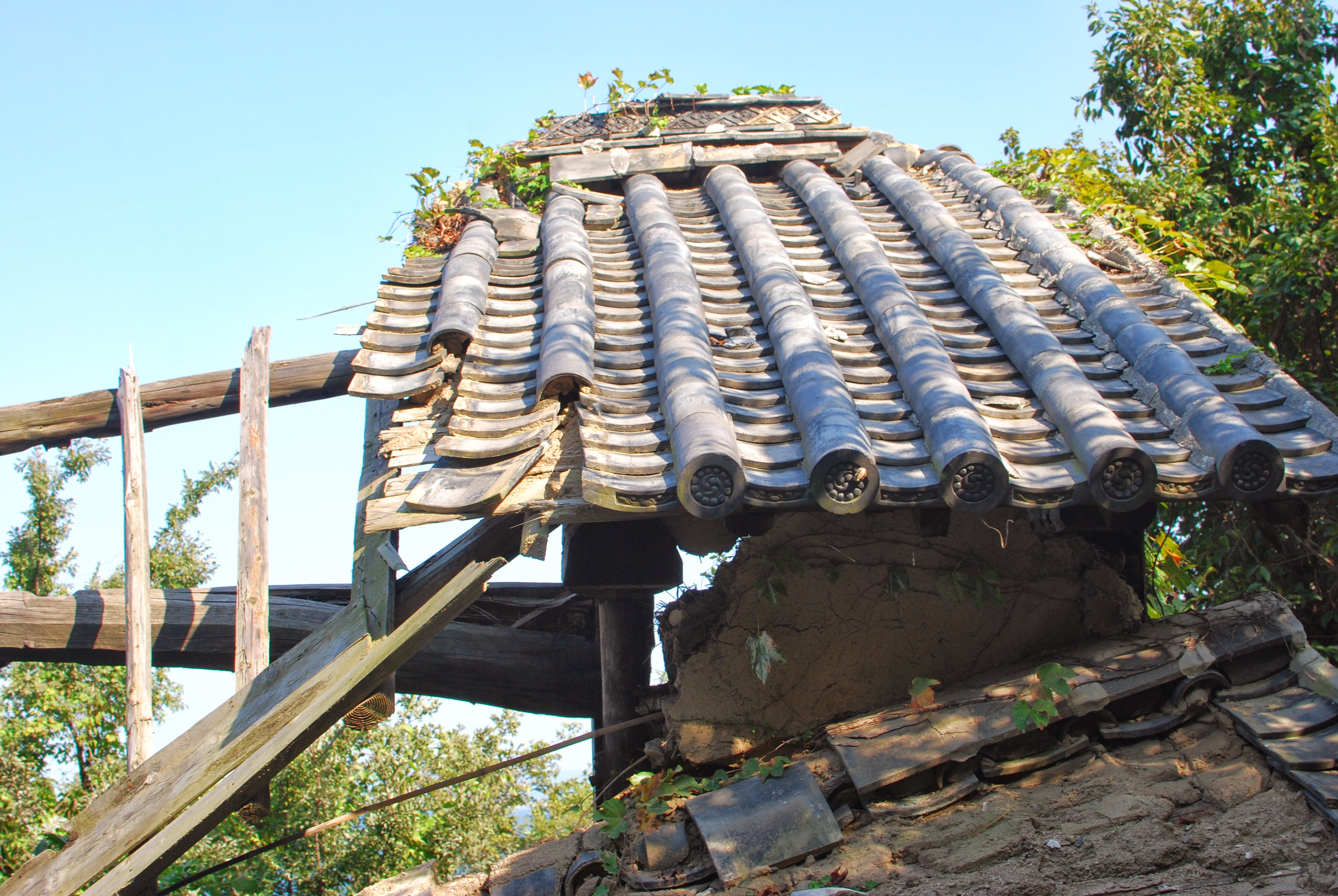 いまは、斜面に立ち並ぶ立派な石垣の家の多くが空き家になっています。